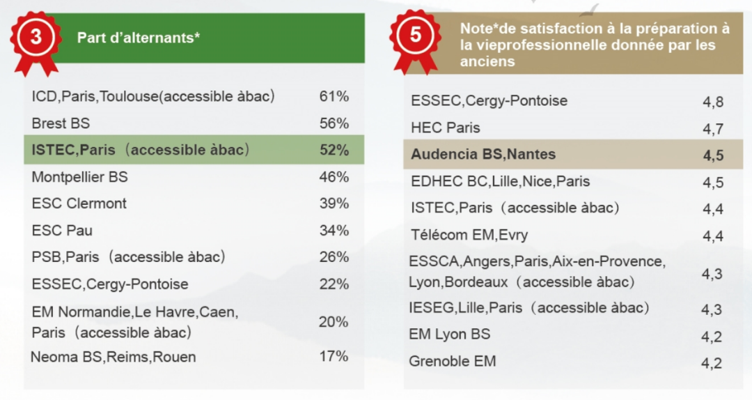 近年由法国权威教育媒体颁布的商学院排行榜中,ISTEC巴黎高商在多项排名中力压传统高商。如